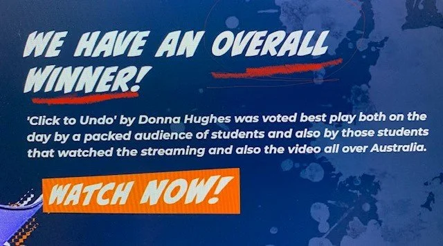 This award is a game changer! Thank you to the 1600 plus teenagers who voted to see my play, Click To Undo completed and a huge thank you to John and Patricia Azarias, Hayden Tonazzi and Michael Bark for the opportunity and support.